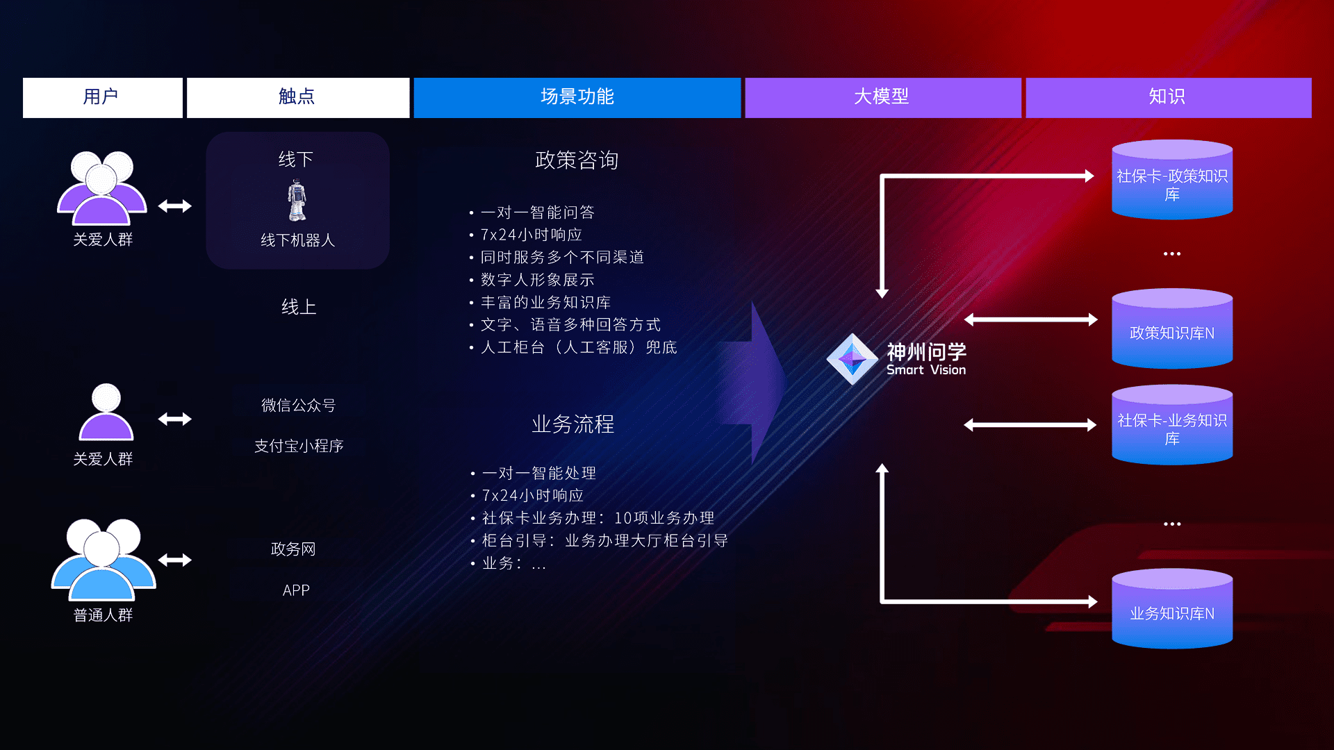 • 线上线下全覆盖:线上提供微信公众号、、支付宝小程序、、、、政务网、、、、app多种渠道,,,与线下机器人形成完整服务体系。。